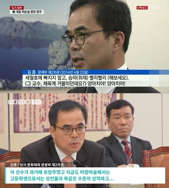 김종 전 차관은 수영선수 박태환 협박, 피겨선수 김연아 불이익 등으로 대중들에게 따가운 눈초리를 받은 인물이다.