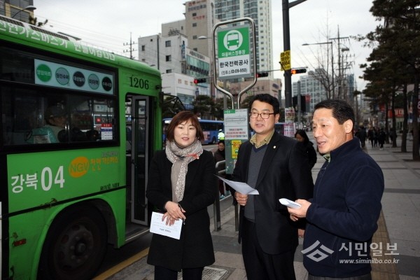이에 대해 강·구 의원은 "승차대가 설치되면 수유시장 중앙버스정류장과 수유시장을 이용하는 많은 주민이 비를 피해 편리하게 마을버스를 이용할 수 있게 된다"며 "앞으로도 주민들의 교통 편리를 위해 더욱 노력하겠다"고 말했다.