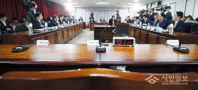 26일 경기 의왕시 서울구치소에서 열린 ‘박근혜 정부의 최순실 등 민간인에 의한 국정농단 의혹사건 진상규명을 위한 국정조사특별위원회 현장 청문회’가 최순실, 정호성, 안종범 증인이 불출석한 채 열리고 있다
