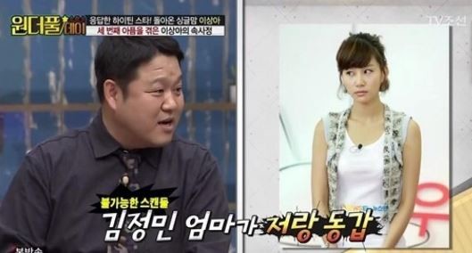 사진 속에는 지난 27일 방송된 TV조선 '원더풀데이'에서 김구라가 김정민과의 열애설에 대해 황당해하며 해명하고 있는 모습이 담겨있다.