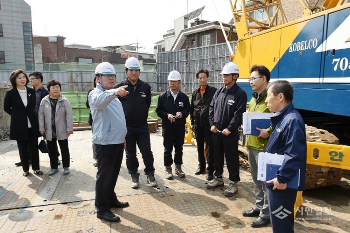 | ▲ 대형 공사장 현장을 방문해 추진현황을 점검하는 조억동 광주시장(왼쪽). | ||