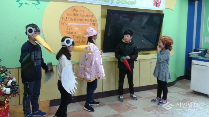 최근 경북 구미시 원호초등학교는 4학년 21명의 학생이 참여한 교내 겨울방학 영어캠프를 실시했다. 사진은 캠프에 참여한 학생들이 영어연극 공연을 펼치는 모습.(사진제공=구미교육지원청)