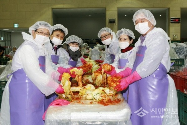 훈련원공원 체육관에서 의원들과 지역 청소년, 자원봉사자 등 200여명이 함께 담근 김장김치는 저소득 800여 가구와 사회복지기관에 전달됐다.
