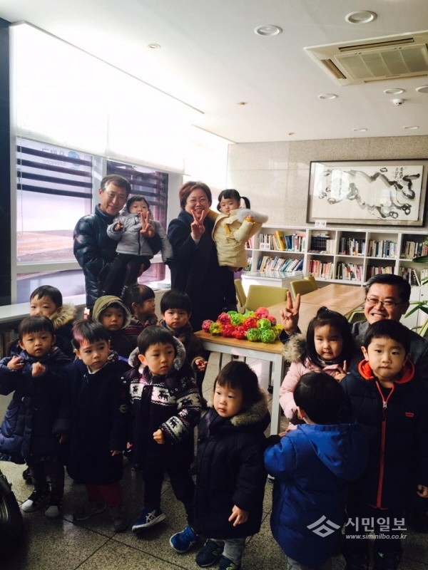 최근 서울 은평구에 소재한 구립경남어린이집 원아 25명이 어려운 이웃을 돕기 위해 2016년 한해 동안 모은 돼지 저금통을 구산동 주민센터로 전달했다. 사진은 관계자들과 어린이들이 기념촬영하는 모습.(사진제공=은평구청)