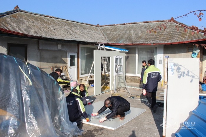 지난 3일 경기 이천소방서 모가남성의용소방대는 모가면 서경리의 홀몸노인의 집을 찾아 '사랑의 나눔 집수리 봉사활동'을 펼쳤다. 사진은 의용소방대원들이 집수리를 진행하는 모습.(사진제공=이천소방서)