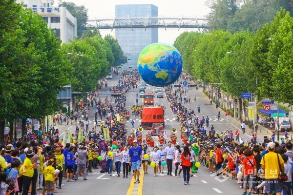 | ▲ 서초구가 2015년 한국판 에딘버러 축제인 서리풀 페스티벌에서 서초강산 퍼레이드를 진행하고 있는 모습. | ||