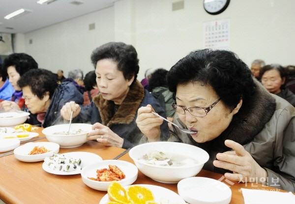 광진구 중곡4동 주민센터, 노인들에 떡국 대접