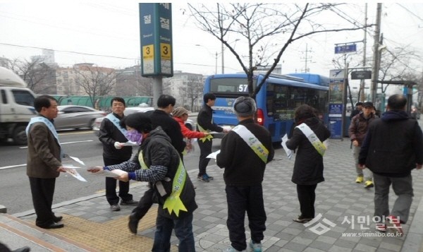 최근 서울 은평구는 ‘제250차 안전점검의 날 행사’를 개최하고 겨울철을 맞아 폭설 및 설해로 인한 안전사고 예방을 위한 안전수칙을 적극 홍보했다. 사진은 행사 참가자들이 지역주민들에게 홍보물을 나눠주는 모습.(사진제공=은평구청)