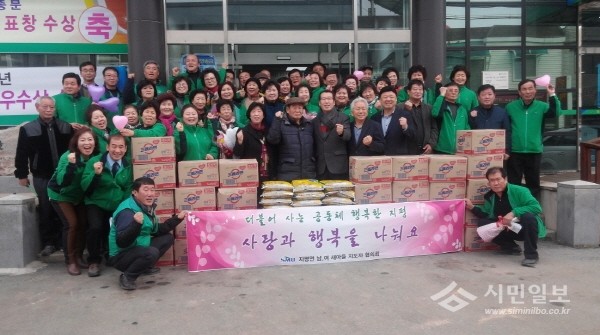 경기 양평군 지평새마을협의회가 지난 5일 지역내 어려운 이웃 56가구에 사랑의 쌀과 라면을 전달했다. 사진은 협의회 관계자들이 기념촬영을 하는 모습.(사진제공=양평군청)
