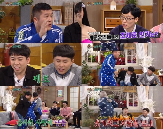 이날 양세형-양세찬에게 유재석은 "조세호는 개그우먼들 사이에서 인기가 있느 편이냐"고 질문했다.