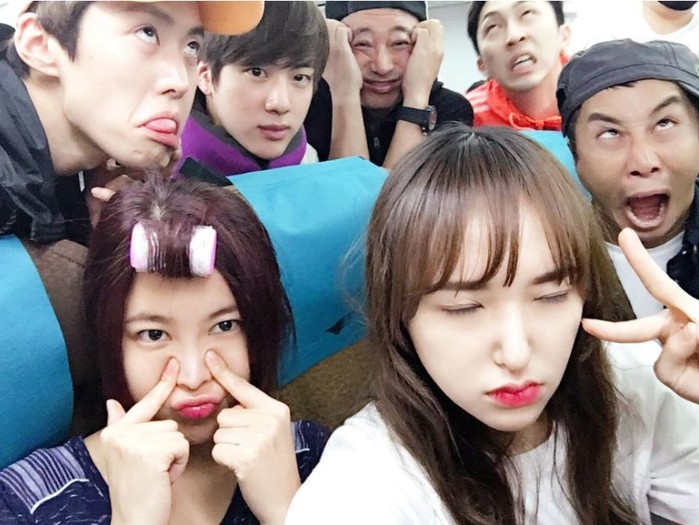 이같은 상황가운데 정글팀 출연자인 우주소녀 성소, 솔비, 방탄소년단 진이 비행기안에서 익살스러운 표정으로 단체사진을 찍은 것이 한 온라인 커뮤니티에 게재된 것.