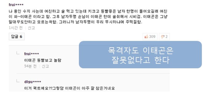 혼자 술먹던 이태곤에서 남성 두명이 악수를 청하면서 시비가 일었다는 것.