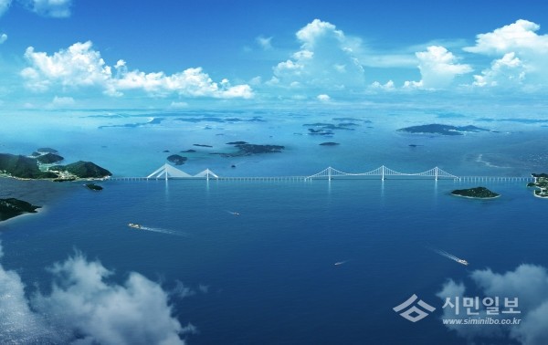 | ▲ 2018년 개통 예정인 새천년대교 조감도 모습. 신안군은 2019년 임자대교 개통, 2020년 흑산공항 개항이 실현되면 ‘관광객 500만 시대’를 맞을 것이라고 기대하고 있다.(사진제공=신안군청) | ||