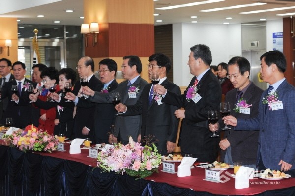 | ▲ 인천시의회 중앙홀에서 열린 신년인사회에 참석한 내빈들이 희망찬 정유년 새해를 기원하며 건배를 하고 있다. | ||