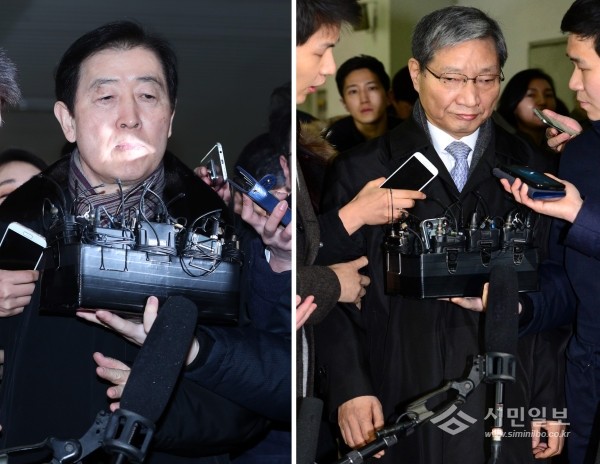| ▲ 최지성 삼성 부회장(왼쪽)과 삼성 장충기 사장(오른쪽)이 9일 서울 강남구 대치동 특별검사팀 사무실에 출석하고 있다. 장사장과 최 부회장 등 삼성전자 미래전략실 수뇌부는 정유라씨 승마 훈련과 장시호씨가 운영했던 동계스포츠영재센터를 지원하는 과정에 깊숙히 개입했다는 의혹을 받아왔다. 특검팀은 이들을 상대로 최순실씨 측에 대한 삼성전자의 두 가지 자금 지원이 2015년 7월과 지난해 2월 박근혜 대통령과 이재용 부회장의 독대 이후에 집중된 경위를 추궁할 계획이다.(사진제공=연합뉴스) | ||