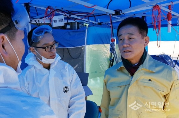 이날 정 의장은 AI 재난안전 대책본부에 방문해 근무 중인 당직자들을 격려했다. 또한 지역내 17곳의 거점소독시설을 직접 찾아 현장을 점검하고 방역작업에 투입된 공무원과 군 장병을 격려했다.