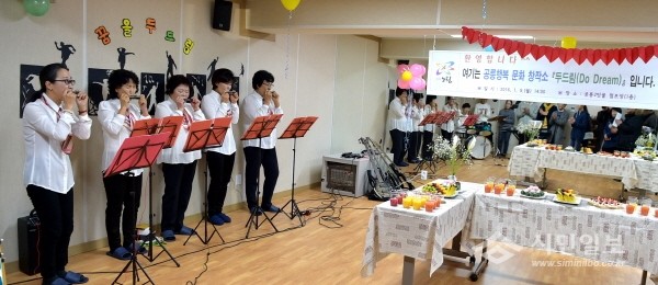 지난 9일 서울 노원구는 공릉2빗물펌프장 1층 유휴공간에서 주민 문화공간으로 탈바꿈한 공릉행복문화창작소 ‘두드림(Do Dream)’ 개소식을 개최했다. 사진은 개소식에서 지역 주민들이 축하 공연을 하고 있는 모습.(사진제공=노원구청)