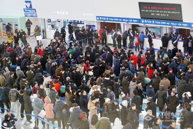 10일 오전 설 열차승차권을 예매하는 시민들이 서울역 매표소 앞에서 줄을 서 기다리고 있다.