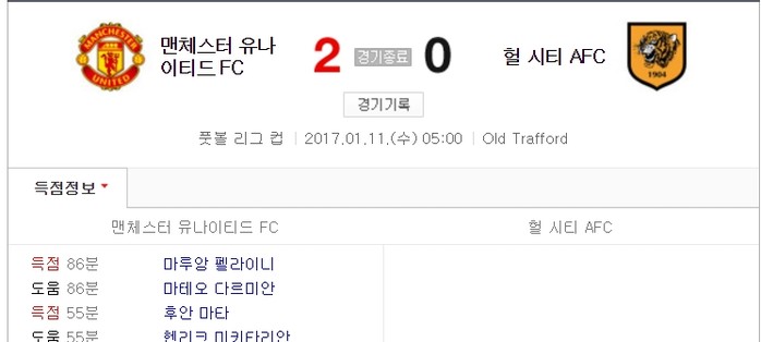 맨유는 11일 오전 5시(이하 한국시각) 영국 맨체스터 올드 트래포드에서 열리는 헐 시티와 2016-17 잉글리시 풋볼 리그컵(EFL컵, 이하 리그컵) 4강 1차전을 치르고 승리했다.