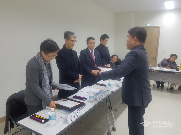 지난 9일 인천 연수구 송도3동 주민자치위원회는 동주민센터 회의실에서 '신규 위원 위촉식'을 진행하며 새롭게 출범했다. 사진은 자치 위원장이 신규 위원들에게 위촉패를 전달하는 모습.(사진제공=연수구청)
