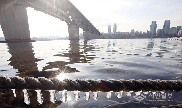 전국적으로 강추위가 기승을 부린 11일 서울 뚝섬 한강공원 인근에 걸린 밧줄에 고드름이 달려 있다.