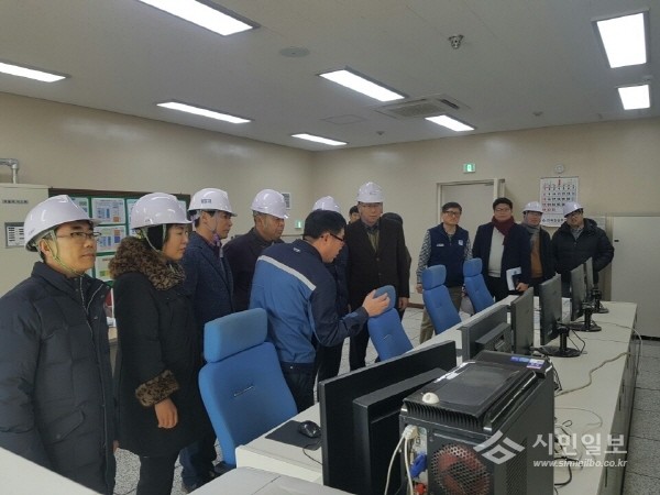 | ▲ 전남도의회 경제관광문화위원회 소속 의원들이 해수담수화시설을 방문해 시설을 둘러보고 있다. | ||