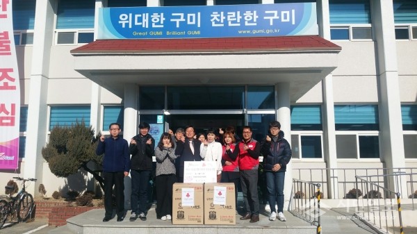 최근 구송봉사단은 홀몸노인 2명에게 온수매트를 후원하기 위해 경북 구미시 장천면사무소를 방문했다. 사진은 관계자들이 기념촬영을 하는 모습.(사진제공=구미시청)