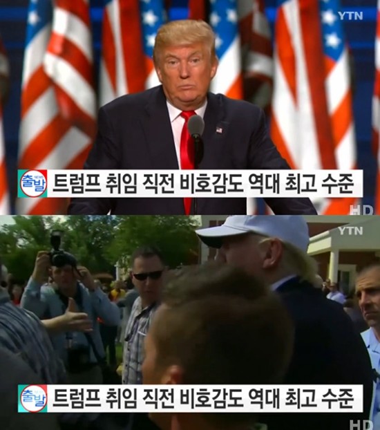 16일(현지시간) 미국 여론조사기관 갤럽에 따르면 지난 4~8일 전국의 성인 1천32명을 대상으로 여론조사를 한 결과 트럼프 당선인의 비호감도는 55%로 나타났다. 이는 버락 오바마 대통령 취임 직전의 18%에 비해 3배 이상 높은 숫자다.