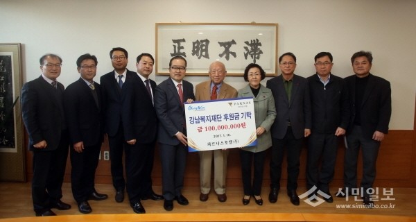 (주)파르나스 호텔, 강남구에 성금 1억 전달