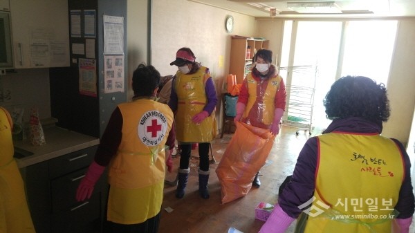 최근 경기 양주시무한돌봄행복센터는 열악한 주거환경에서 생활하는 사례관리대상자를 위해 '햇님달님 주거환경개선'이란 주제로 주거환경개선을 위한 대청소를 실시했다. 사진은 참여자들이 청소하는 모습.(사진제공=양주시청)