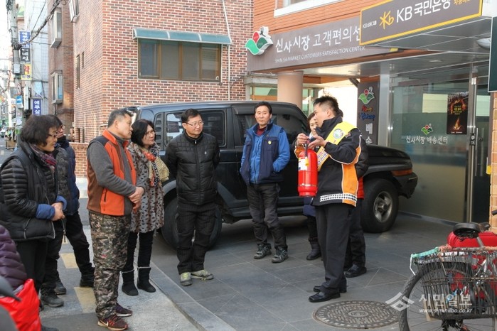 지난 16일 서울 관악소방서는 화재예방을 위해 신원시장 및 신사시장을 찾아 시장 상인을 대상으로 '소방안전교육'을 실시했다. 사진은 신사시장에서 소화기사용법에 대한 교육이 진행 중인 모습.(사진제공=관악소방서)