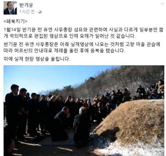 반기문은 이에 자신이 살던 지역의 풍습대로 올렸다고 해명했지만 논란이 더 커지자 해당 영상을 공개한 것이다.