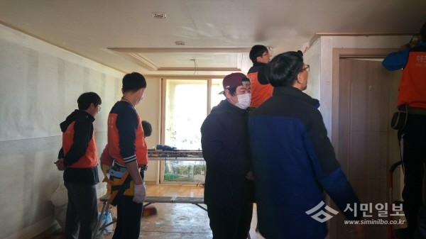 경기 양주시무한돌봄행복센터는 지난 15일 열악한 주거환경에서 생활하는 사례관리대상자를 위해 '햇님달님 주거환경개선'이란 주제로 주거환경개선사업을 진행했다. 사진은 참여자들이 벽지 및 장판, 전등 등을 교체하는 모습.(사진제공=양주시청)