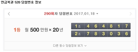 한편 290회 1등 당첨번호는 1조 464817번 2조 783036번이다.