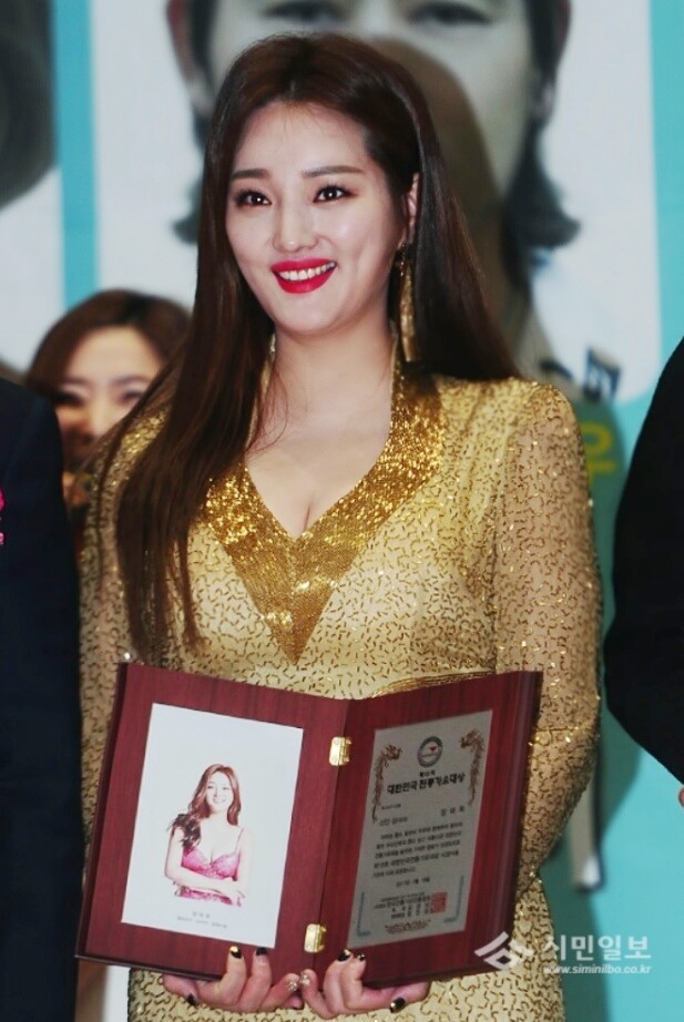 이날 장태희는 화려한 골드 색상의 원피스를 입고 등장, 이목을 집중시켰다.