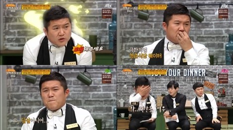 이에 조세호는 조급한 목소리로 딤섬의 맛을 표현해달라 말하며 딤섬을 맛보고 싶어서 미치겠다는 표정과 리액션으로 주위를 폭소케했다. 이를 본 남창희는 “조세호씨 왜 울어요?”라고 물어 시청자들의 웃음을 자아냈다.
