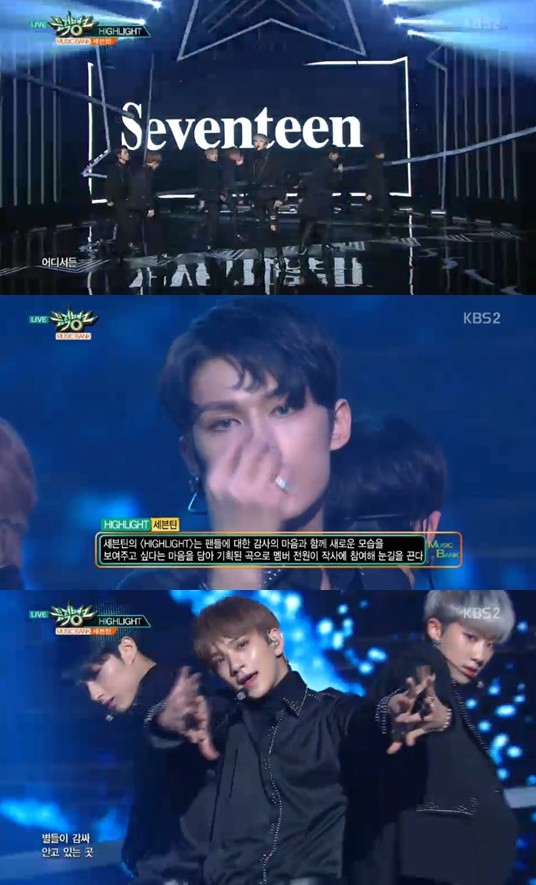 20일 방송된 KBS2 '뮤직뱅크'에서는 세븐틴이 'HIGHLIGHT(하이라이트)'을 선보였다.