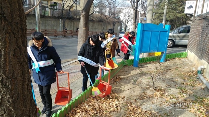 인천 남동구 만수4동은 지난 19일 지역내 청소년 30여명이 참여한 가운데 '청소년 청렴·청결 캠페인'을 실시했다. 사진은 캠페인에 참여한 학생들이 낙엽을 쓸고 있는 모습.(사진제공=남동구청)