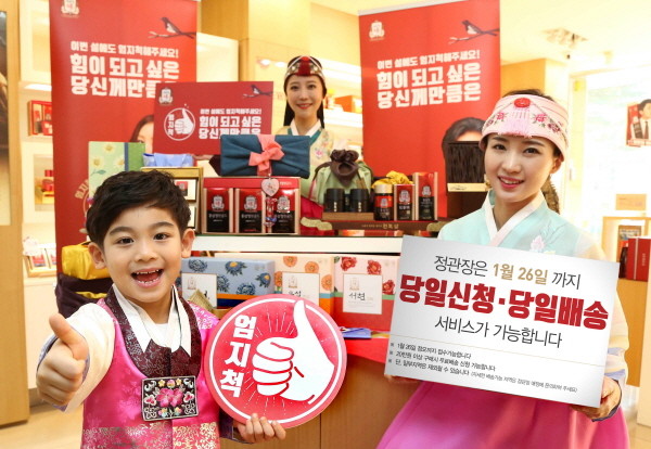 정관장 ‘당일배송’ 서비스를 희망하는 고객들은 이달 26일 정오까지 전국 정관장 매장에서 배송 가능 지역 여부를 확인 후 신청하면 된다.