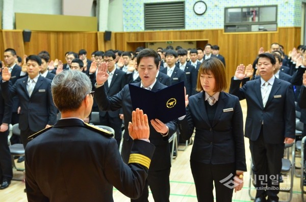 최근 서울 강남소방서는 소방서 본청 강당에서 직원 120여명이 참석한 가운데 소방공무원 직장교육을 실시했다. 사진은 직원들이 교육 간 청렴실천결의문 낭독과 청렴선서를 하는 모습.(사진제공=강남소방서)