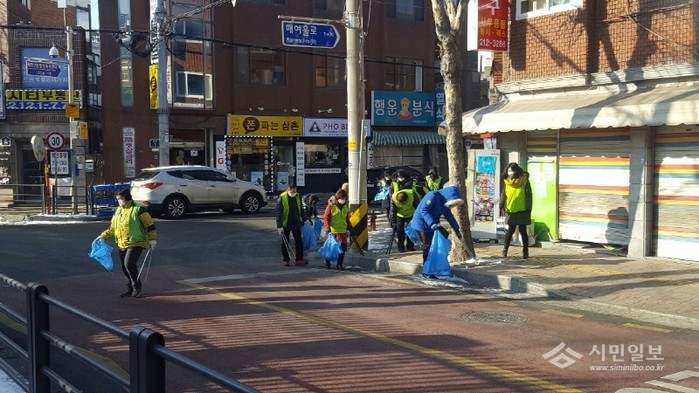 경기 수원시 영통구 매탄2동은 설을 맞아 주민단체원을 비롯해 환경미화원, 동주민센터 직원 등이 참여한 가운데 카페거리를 시작으로 도로변 잔설 제거와 인도변의 무단투기 쓰레기를 집중 수거하는 등의 일제 대청소를 실시했다.(사진제공=영통구청)
