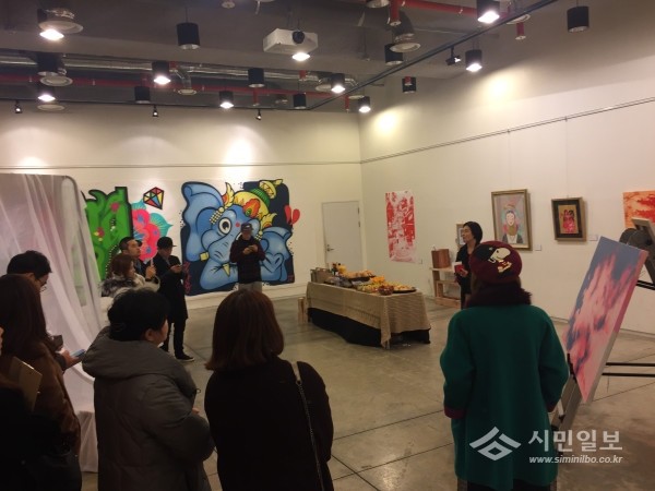 최근 서울 종로구 종로문화재단은 하나투어와 함께 대학로 마로니에공원 좋은공연안내센터 다목적홀에서 진행한 <종로와 치앙마이(Chiang Mai)에서 만난 옛날과 오늘 - 고도(古都)에서 ‘내일’을 그리다> 작품전을 성료했다. 사진은 큐레이터가 작품을 설명하는 모습.(사진제공=종로구청)