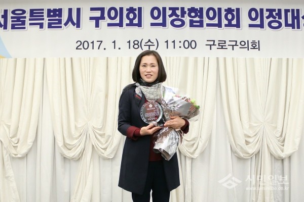 최근 박종여 서울 구로구의원은 베스트 웨스트 구로호텔에서 개최된 서울시 구의회 의장협의회 1월 월례회의에서 의정대상을 수상했다. 사진은 박 의원이 의정대상 수상 후 기념사진 촬영을 하는 모습.(사진제공=구로구의회)