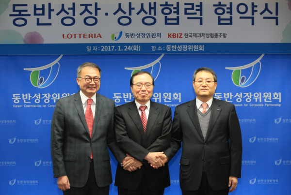 25일 ㈜롯데리아 관계자에 따르면 이번 협약은 중소기업의 판로 확보를 통한 상생 경영을 위해 실시하는 것으로, 이날 체결식에는 ㈜롯데리아 노일식 대표이사와 동반위 안충영 위원장, 제빵조합 이상준 이사장 등 주요 관계자들이 참석해 3자간의 상생 협약을 다짐했다.