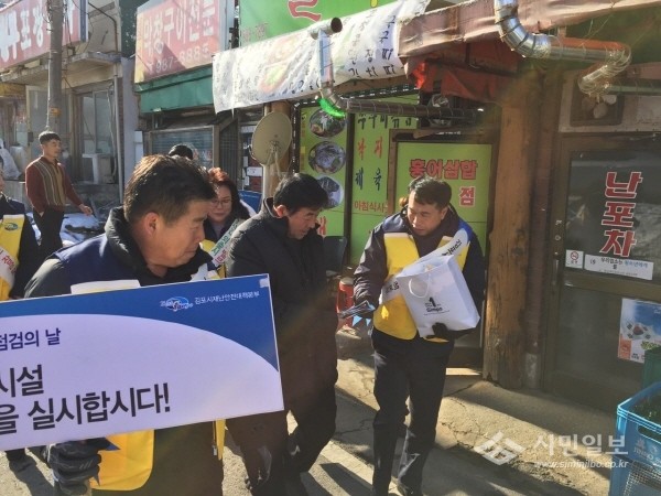 지난 23일 경기 김포시는 설 명절 대비 시민 안전의식을 높이기 위한 제250차 안전점검의 날 캠페인을 실시했다. 사진은 참여자들이 시민들에게 홍보물을 배부하는 모습.(사진제공=김포시청)