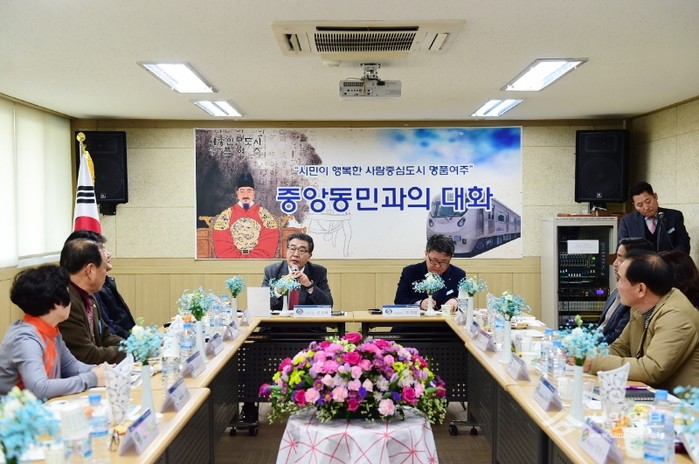 경기 여주시는 지난 24일 중앙동행정복지센터를 방문해 '2017년 새해 찾아가는 시민과의 간담회'를 개최했다. 사진은 원경희 시장이 '중앙동민과의 대화'에서 발언하는 모습.(사진제공=여주시청)