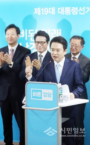 남경필 경기도지사가 25일 오전 서울 여의도 바른정당 당사에서 대선 출마선언을 하고 있다.