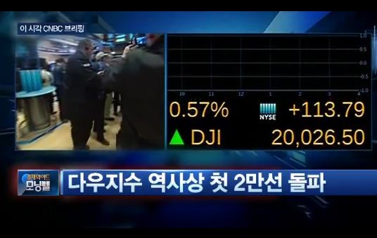 종목별로는 보잉 골드만삭스 IBM이 다우 2만 돌파에 가장 큰 기여를 해서 공포지수로 불리는 시카고 옵션거래소의 변동성 지수, 빅스 지수는 10.75 수준입니다. 이례적으로 낮은 수준으로 시장의 급락을 걱정하는 투자자가 그만큼 적다는 의미다.