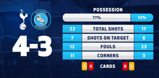손흥민은 0대2로 끌려가던 토트넘의 공격을 이끌었다. 그는 후반 60분 팀의 첫 번째 골을 기록하며 화력을 나타내기 시작했다. 이후 토트넘은 65분 빈센트 얀센, 89분 바미 델레 알리의 골로 승기를 잡았다. 이때 후반 83분 개리 톰슨이 추가골을 집어넣으며 3대3의 스코어를 기록했으니, 손흥민이 다시 후반 추가 시간 골을 기록하며 최종 스코어 4대3으로 토트넘이 승리를 가져갔다.