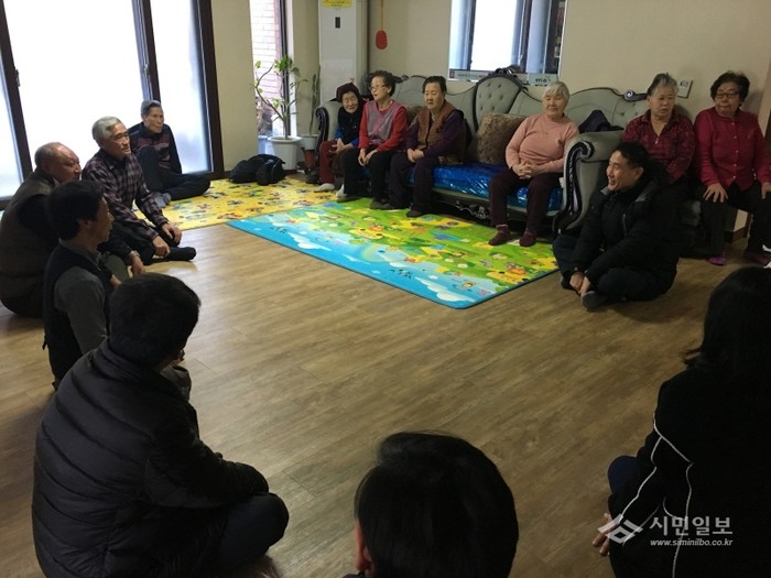 인천 계양구 계양3동 5개 사회단체(주민자치위원회, 통장자율회, 새마을부녀회, 새마을지도자협의회, 보장협의체)는 최근 설 명절을 맞아 경로당을 방문했다. 사진은 동 관계자가 노인들과 이야기를 나누는 모습.(사진제공=계양구청)